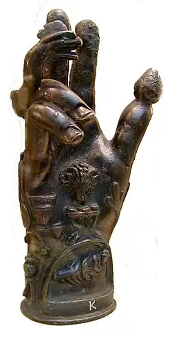 - ↑ The British Museum - Bronze hand used in the worship of Sabazius, probably attached to poles for processional use. [online]. [cit. 2018-04-13]. Dostupné online. (anglicky)