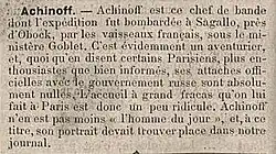 Francouzský tisk Le Progrès píšící o Ašinovi -