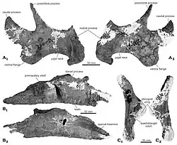 ![]() Kosterní fragmenty spodní čelisti rodu Sahaliyania | |