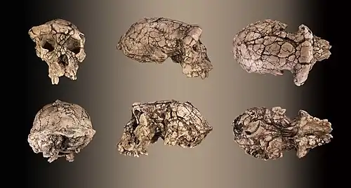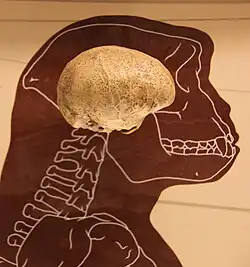 Odlitek originálního nálezu lebky hominida Sahelanthropus tchadensis. Lebce se přezdívá Toumaï, což znamená Naděje života.[1]