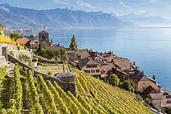 Terasovitě upravené svahy místní vinařské oblasti Lavaux jsou zařazeny do seznamu světového kulturního dědictví UNESCO.