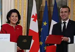 - ↑ a b ire. Gruzie má první prezidentku v historii. Prosazuje vyvážený vztah k Rusku i Západu. ČT24.cz [online]. 2018-11-29 [cit. 2018-11-29]. Dostupné online.
