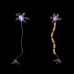 Myelinizované axony umožňují, aby se akční potenciály vyskytovaly pouze na nemyelinizovaných Ranvierových zářezech, které se vyskytují mezi myelinovými internodii.