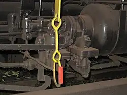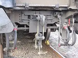 Propojovací kabel ep brzdy podle UIC 541–5 vpravo od šroubovky na švýcarském voze
