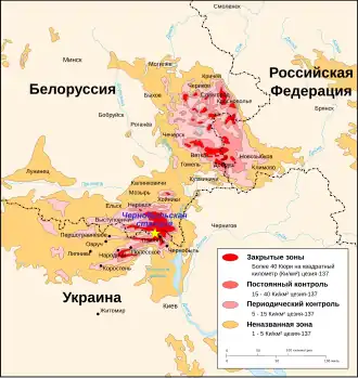 Nepřetržitě sledovaná zóna | 15—40 Ci/km² |