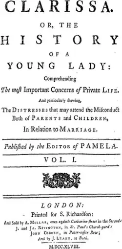 Ještě významnější je pro vývoj anglického i evropského románu jeho další román Clarissa, or the History of a Young Lady (1748, Clarissa aneb Příběh mladé dámy), ve kterém všestranně zachytil duševní stavy postav a vytvořil tragickou hrdinku, jejíž život je ničen měšťáckou peněžní morálkou a aristokratickou nemorálností.[3]