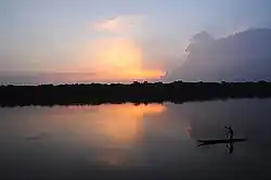 Zdroj vody je převážně dešťový. Průměrný průtok vody u města Veso je v březnu 700 m³/s a v říjnu a listopadu 4250 m³/s.
