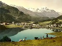 ![]() Pohled na St. Moritz s jezerem Moritzer See, vrcholy Piz Nair a Piz Saluver | |