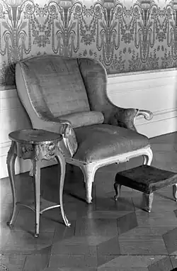Označení místností: 1 vestibul, 2 mramorový sál, 3 audienční sál, 4 koncertní sál, 5 kabinet a ložnice, 6 knihovna, 7 galerie, 8 až 10 pokoje pro hosty, 11 pokoj pro hosty „Voltairův pokoj“, 12 pokoj pro hosty „Rottenburgův pokoj“, 13 místnosti pro služebnictvo