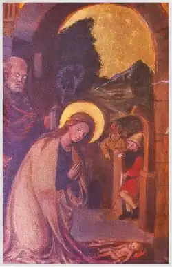 Milostný obrázek Adorace novorozeného Krista, který protestanti zohavili vypícháním očí postav Ježíšových rodičů, našel v dubnu roku 1620 pohozený ve Štěnovicích u Plzně kaplan vojska bavorského vévody Maxmiliána a účastník bělohorské bitvy, bosý karmelitán Dominik à Jesu Maria. Ten také během bělohorské bitvy žehnal obrázkem vojsku a přenesl jej poté do Říma. Roku 1622 jej dal umístit do zlaté svatozáře v nástavci hlavního oltáře. On také výrazně přispěl k dobudování kostela. Originál obrázku shořel při požáru kostela roku 1833, nahrazuje jej kopie. Další tři kopie jsou uctívány v kostele sv. Prokopa ve Strakonicích, v poutním kostele na Bílé Hoře a v karmelitánském kostele Panny Marie Vítězné v Praze na Malé Straně, odkud byla do římského kostela přinesena kopie sošky Pražského Jezulátka, uctívaná zde na druhém postranním oltáři.