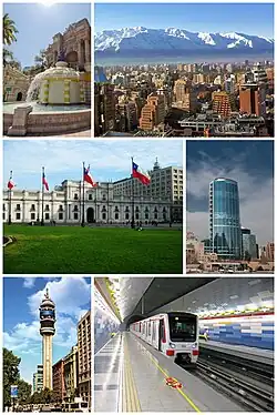 Santiago bylo založeno v roce 1541 španělským konkvistadorem Pedrem de Valdivia a od koloniálních dob zastává funkci hlavního města Chile.[2] Centrum města se vyznačuje neoklasicistní architekturou 19. století a křivolakými postranními uličkami ve stylu art deco, novogotiky a dalších slohů. Vzhled Santiaga určuje několik samostatně stojících kopců a dravá řeka Mapocho, kterou lemují parky, jako je Parque Bicentenario, Parque Forestal a Parque de la Familia. Vrcholky And je viditelné z většiny částí města a přispívá k problémům se smogem, zejména v zimě kvůli nedostatku deště; okrajové části města jsou obklopeny vinicemi.