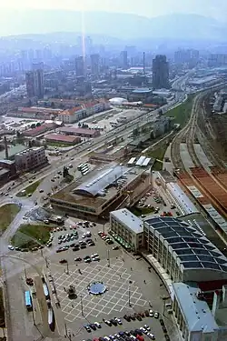 Budova má půdorys půlkruhu a je zastřešena konstrukcí z hyperbolických paraboloidů. Před ní se nachází rozsáhlé volné prostranství a tramvajová konečná. Náměstí před nádražím nese název po obětech masakru ve Srebrenici (Trg žrtava genocida u Srebrenici).