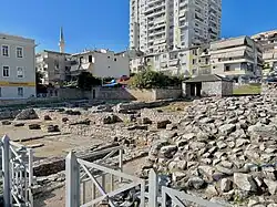 Z antických dob jsou dochovány části zdí a pozůstatky raně křesťanské baziliky.[3] Stojí v samotném středu města. Jedinou památkou z dob Osmanské říše je stará mešita, která od roku 1967 neslouží svému účelu.[23]