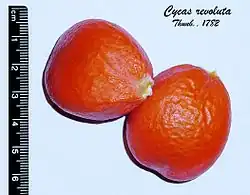 V případě řady cykasů je obal semene (sarkotesta) jasně zbarven. Může sloužit jako potrava zvířat. Sarkotesta u zralých semen jinanu silně zapáchá.