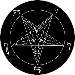 Mezi symboly, často spojované s satanismem patří Bafomet (kozel se symbolem pentagramu na čele), případně. tzv. bafometova pečeť – obrácený pentagram s bafometovou hlavou a symboly satanismu. Toto slovo vzniklo pravděpodobně zkomolením jména islámského proroka Mohameda.[27] Také to mohla být dvě řecká slova spojená dohromady, a pak by to znamenalo „rozplynutí se v moudrosti“. Údajně jej uctívali templáři a to posloužilo jako záminka pro jejich brutální vyvraždění.[27] V 19. století začali pentagram využívat okultisté jako Aleister Crowley nebo Eliphas Lévi a později se stal součástí satanistické symboliky a po nástupu black metalu i součástí metalové módy. Vyobrazení kozla je dáváno do souvislosti s kozlem, který byl ve starém Izraeli symbolicky vyháněn ke zlému pouštnímu duchu Azázelovi.[28]V roce 1969 si znak přisvojila Církev Satanova, jejímž zakladatelem byl Anton Szandor LaVey.