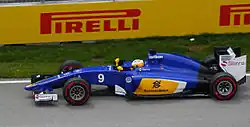 ![]() Rezervní jezdec Raffaele Marciello řídící vůz C34 při prvním volném pátečním tréninku před Grand Prix Malajsie 2015. | |