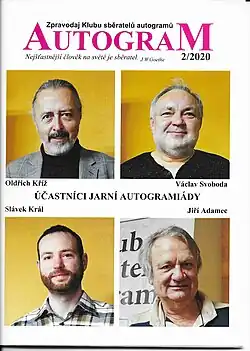 Obálka časopisu Autogram, který vydává Klub sběratelů autogramů