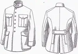 Blůza tmavomodré barvy se zapínáním na 6 knoflíků, byla opatřena čtyřmi vnějšími kapsami s patkami na knoflíky. V zadní části byla opatřena dvěma svislými patkami, které byly mezi sebou spojeny jednodílnou látkovou sponou (tzv. dragounem) připjatou dvěma knoflíky. Okraje blůzy, límce patek a spony byly lemovány výložkovou barvou. Veškeré knoflíky nesly iniciálu ČS.