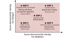 - ↑ a b c d e f RIAHI, Keywan; VAN VUUREN, Detlef P.; KRIEGLER, Elmar. The Shared Socioeconomic Pathways and their energy, land use, and greenhouse gas emissions implications: An overview. Global Environmental Change. 2017-01, roč. 42, s. 153–168. Dostupné online [cit. 2021-08-17]. doi:10.1016/j.gloenvcha.2016.05.009. (anglicky)