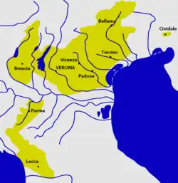 Prvním vládcem Verony se stal Ezzelino III., když byl roku 1226 zvolen podestou obce a podařilo se mu úřad převést do trvalého držení rodu. Ve Veroně Scaligerové nechali během svého mnohaletého působení vystavět hrad a most Ponte Scaligero. U kostela Santa Maria Antica, jehož farnost patřila k části města, kde bylo sídlo rodu, stojí tři jezdecké náhrobky patřící Cangrandemu I., který je zde zpodobněn jako usmívající se rytíř, Mastinovi II. a Cansignoriovi.[2]
