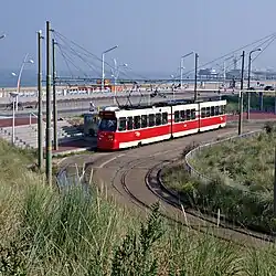 Scheveningen je spojen s ostatními částmi Haagu tramvajovou dopravou (linky 1, 9, 11, 12). Linka č. 1 jede přes druhé největší nádraží v Haagu, Den Haag Hollands Spoor (HS), až do měst Rijswijk a Delft. Linka č. 9 spojuje Madurodam s hlavním nádražím Den Haag Centraal i s nádražím Den Haag HS.