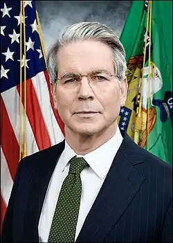 - ↑ a b Donald Trump si za ministra financí USA vybral investora Scotta Bessenta. iDNES.cz [online]. 2024-11-23 [cit. 2024-11-23]. Dostupné online.