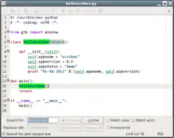 Scribes je programátorský editor s jednoduchým designem pro GNOME napsaný v Pythonu Lateefem Alabi-Okim. Poskytuje zvýrazňování syntaxe, automatické doplňování, chytré odsazování, doplňování párových znaků, šablony a záložky. Scribes je Svobodný software šířený pod licencí GNU General Public License.