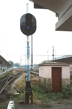 Seřaďovací návěstidlo mechanické - rok 1985, Praha hlavní nádraží. -