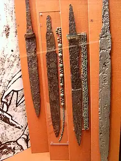 Na olomouckém hradě byl nalezen 41 cm dlouhý sax. Kvůli úzké čepeli (3 cm) by se mohlo jednat o napodobeninu vyrobenou místním řemeslníkem. Další saxy byly nalezeny v Lipníku nad Bečvou, v Přítlukách v kostrovém hrobu, ve Staré Kouřimi, v Jindřichově u Chebu a dva saxy (jeden dlouhý a jeden krátký) byly nalezeny na Výšině sv. Metoděje u Uherského Hradiště.[1]