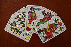 Nejhodnotnějšími kartami v této hře jsou sedmy, které přebíjejí ostatní karty. Esa a desítky mají hodnotu deset bodů každá.[1] Pokud hrají 3 hráči, odstraní se před hrou z balíčku 2 nebodované karty (zpravidla osmička a devítka). Hráč, který dostane červeného krále, hraje sám (přičemž je držení červeného krále rozumné zatajit nejdéle, jak je to jen možné), zbylí dva hrají spolu a na konci se jim sčítají body. Ve hře tří hráčů platí červený král zároveň jako sedma. Barvy karet ani jejich hierarchie nemají v této hře jinak žádný význam.