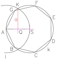 - velikost úsečky a = |KQ| je délka strany sedmiúhelníku