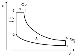 - množství izochoricky přivedeného tepla, tj. poměru tlaku ve stavu 3,4 k tlaku ve stavu 2 (λp)