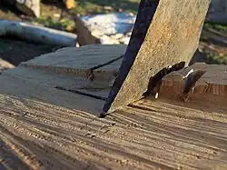 - sekání do hlíny či písku, tedy používání sekery v roli krumpáče či motyky (výjimku tvoří pouze nutnost přesekat kořen stromu, i zde je nutno dbát na to, abychom netesali do kamenů či jiných tvrdých předmětů)