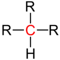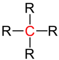 | Červeně jsou zvýrazněny centrální atomy. Srovnání primárních centrálních atomů se , terciárními a kvarterními centrálními atomy. | ||||