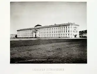 Roku 1856 došlo k velké opravě, po které sem byly umístěny soudní úřady. Tehdy byl také odvezený svatý Jiří na kupoli nahrazen velkou carskou korunou s nápisem Zákon (symbol carské zákonnosti) a budově se začalo říkat Budova soudních nařízení. Až do roku 1865 zde zároveň sídlilo Moskevské palácové architektonické učiliště.