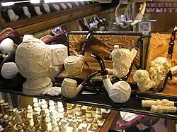 Z nejčistších a nejkvalitnějších bílých kusů mořské pěny se vyřezávají dýmky, tzv. pěnovky (srov. Jan Neruda: Jak si nakouřil pan Vorel pěnovku) a špičky na cigarety a drobné ozdobné předměty. Pěnovky se začaly vyrábět již v 17. století v Turecku, do Evropy pronikly v 18. století a brzy se staly velkou módou mezi šlechtou. Typickou inspirací pěnovek jsou hlavy slavných osobností, zvířata skutečná i mytologická, erotické scény, lovecké výjevy a podobně. Zvláště oblíbený námět je lidská lebka, do níž je zaťatý orlí spár. Pěnovky se ukládají do dřevěných kufříčků vyrobených na míru, neboť jsou velmi křehké. Při kouření se doporučuje pěnovku držet v rukavici, nebo v kapesníku, protože lidský pot a kožní maz ucpává jemné póry mořské pěny. Po správném nakouření se bílá barva pěnovky mění v medově zlatohnědou. Povrch dýmky bývá též někdy patinován, například včelím voskem, nebo vorvaninou.