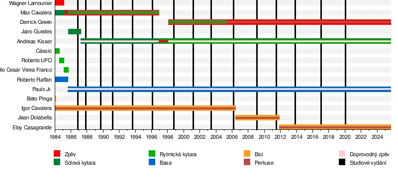 - Max Cavalera – Zpěv (1985–1996), rytmická kytara, perkuse (1986–1996), sólo kytara (1984–1986)