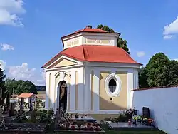 - hroby na horní terase hřbitova v Lomnici, hřbitovní kaple
