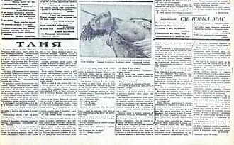 - ↑ Jméno, kterým se Zoja Kosmoděmjanskaja nazvala při výslechu.[15].