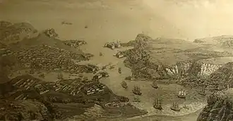 Litografie zobrazující Sevastopolský záliv (50. léta 19. století)