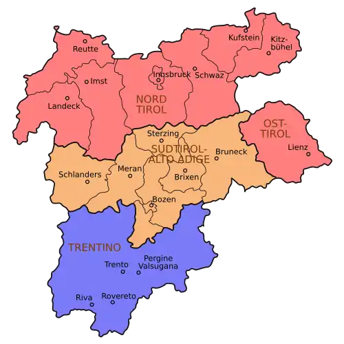 Ve středověku bylo Tyrolsko součástí Svaté říše římské. Ve 12. století vzniklo Tyrolské hrabství, které se ve 14. století dostalo pod nadvládu Habsburků. Země se stala součástí Arcivévodství rakouského a roku 1504 bylo hrabství okněžněno, tj. panství mělo váhu knížectví. V roce 1815 bylo Tyrolsko včleněno do Rakouského císařství a Německého spolku. Roku 1867 vznikla duální monarchie Rakouska-Uherska, která se v roce 1914 zapojila do první světové války na straně Trojspolku po boku Německa. Centrální mocnosti válku prohrály a v roce 1918 se Rakousko-Uhersko rozpadlo, vznikla republika Německé Rakousko. V letech 1918–1920 neměl nový rakouský stát stále jisté hranice; plánovalo se vytvoření státu zahrnujícího české, moravské i slezské Sudety, tedy dnešní území Rakouska včetně dnešního italského Jižního Tyrolska. Po mírových konferencích však Sudety připadly ČSR a Jižní Tyroly Itálii. V roce 1921 se Tyrolsko stalo součástí Rakouské republiky jako jedna ze spolkových zemí.