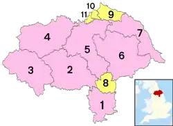 Ceremoniální hrabství je rozděleno do 11 distriktů: