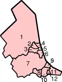 | Tyne a Wear * | 2. Newcastle upon Tyne, 3. Gateshead, 4. North Tyneside, 5. South Tyneside, 6. Sunderland | ||