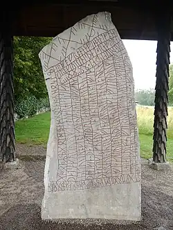 Loki na tzv. snaptunském kameni, Moesgårdské muzeum, Århus, Dánsko -