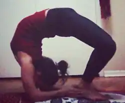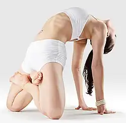 | Camatkārāsana | चमत्कारासन | Divoženka | záklon (Purva Pratana Sthiti) |