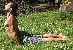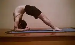 | Cakrāsana or Ūrdhva Dhanurāsana | चक्रासन or ऊर्ध्वधनुरासन | Kruh /most | záklon (Purva Pratana Sthiti) |