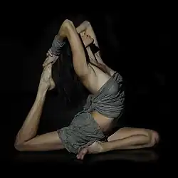 | Eka Pāda Rājakapotāsana II | एकपादराजकपोतासन | jednonožní holub | záklon (Purva Pratana Sthiti) |