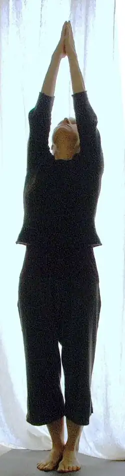 | Tāḍāsana Ūrdhva Baddha Hastāsana | ताडासनौउर्ध्वबद्धहस्तासन | Hora s rukama nahoře | stojící (Uttihista Sthiti) |