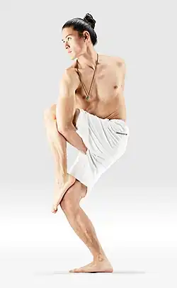| Sthiti Baddha Yogadaṇḍāsana | स्थितिबद्धयोगदण्डासन | Spojený jogín | stojící (Uttihista Sthiti) |