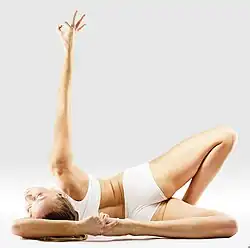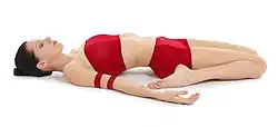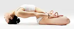 | Suptabaddha-koṇāsana | सुप्तभद्धकोणासन | Zakloněný úhel | odpočinek (Visranta Karaka Asana) |
